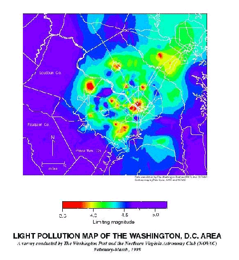 Bill Burton of the Northern Virginia Astronomy Club and the Washington Post documented Sky Glow in the Washington DC metro area.